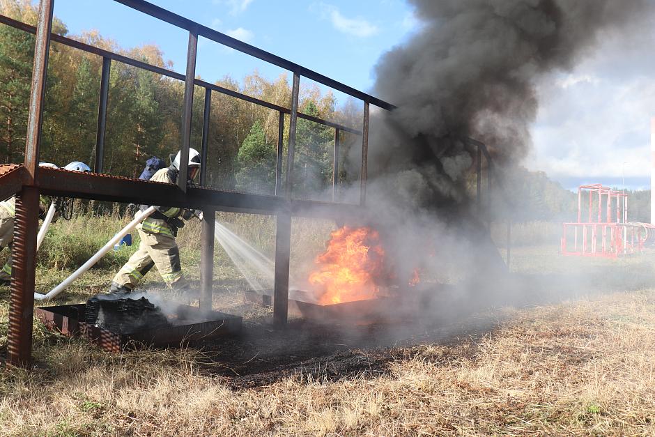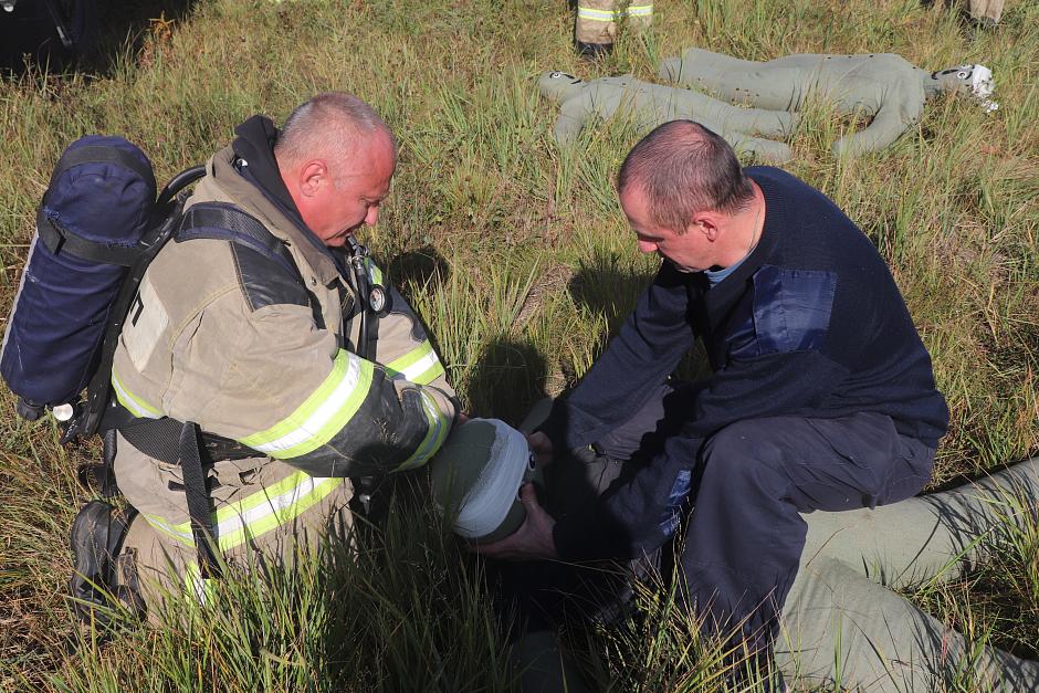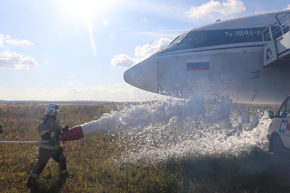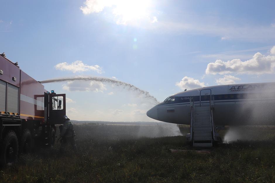 Спасатели отрабатывают упражнения на огневой полосе психологической подготовки, действия на пожарной полосе препятствий, в которую входят забор, бум, лабиринт (змейка) и труба, мероприятия по покрытию взлетно-посадочной полосы специальной пеной для предотвращения возгорания самолета при аварийной посадке, тушению разлитого топлива, охлаждению фюзеляжа и шасси, а также обеспечению безопасной на эвакуации пассажиров, эвакуируют условно пострадавших.