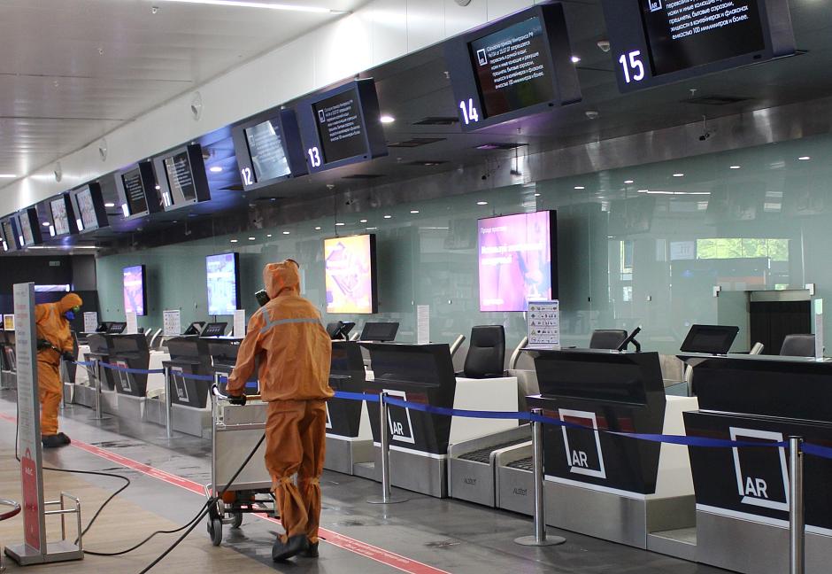 Среди реализуемых мер – обеспечение сотрудников средствами индивидуальной защиты, постоянная ежедневная термометрия персонала. В зонах пребывания пассажиров и технологических помещениях дополнительно установлены 37 диспенсеров с антисептическим средством, обеспечивается 100-поцентная термометрия прилетевших пассажиров, кроме этого, на входе в аэровокзальный комплекс установлено тепловизионное оборудование. Организован постоянный контроль соблюдения масочного режима на территории аэровокзала. Для пассажиров и персонала организовано аудио, визуальное информирование о необходимых мерах профилактики и порядке действий при появлении симптомов ОРВИ, а также о действующих требованиях по соблюдению санитарно-эпидемиологического благополучия. В зонах пребывания людей нанесена специальная разметка для обеспечения безопасной дистанции. Уборка всех помещений аэровокзального комплекса проводится в усиленном режиме с применением дезинфицирующих средств, а все контактные поверхности в терминале каждый час обрабатываются хлорсодержащими средствами. Проводится ежедневная обработка приточно-вытяжной системы циркуляции воздуха в здании аэровокзала, а в отдельных помещениях - дезинфекция воздуха с применением бактерицидных излучателей.
