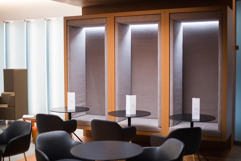 Зал для пассажиров-держателей карт Priority Pass открылся в аэропорту Стригино в ноябре 2019 года. Художественный образ пространства разработан архитектурным бюро NEFA ARCHITECTS (Москва). По словам создателей, они стремились создать в интерьере атмосферу комфорта и безопасности, подчеркнуть индивидуальный подход к пассажирам. В зале предусмотрены приветственная зона, кухня и барная зона, мягкая и тихая зоны для ожидания, обеденная и детская зоны. Зал расположен в зоне ожидания вылета внутренних авиалиний и может обслуживать одновременно до 50 человек. Пространство оформлено в теплых уютных тонах, ненавязчиво зонировано, у пассажиров есть возможность выбора более уединенной или оживленной зоны для ожидания.